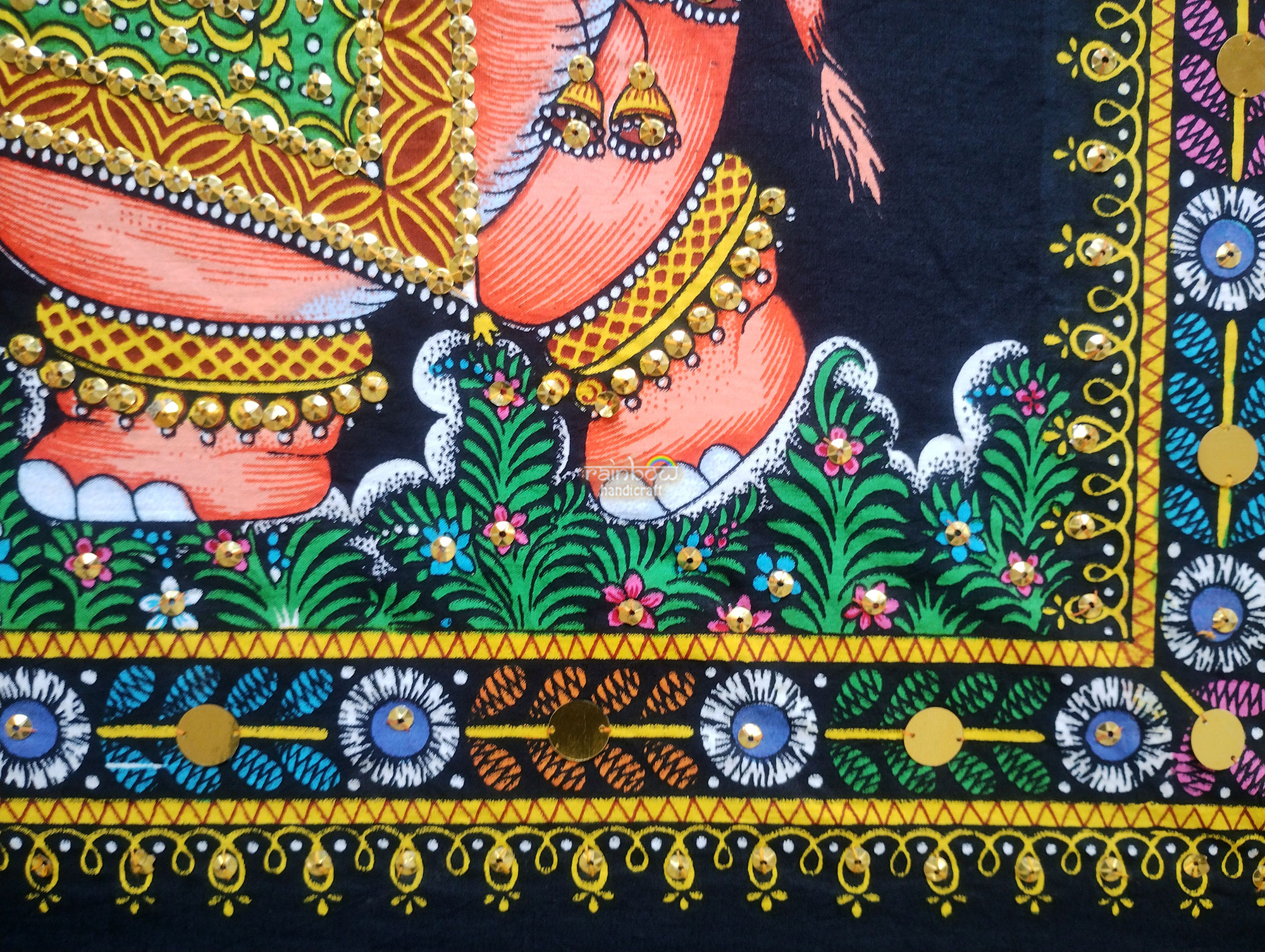 Our hindu tapestry has special quality sequin so it will glitter in light and has long lasting vibrant color life.