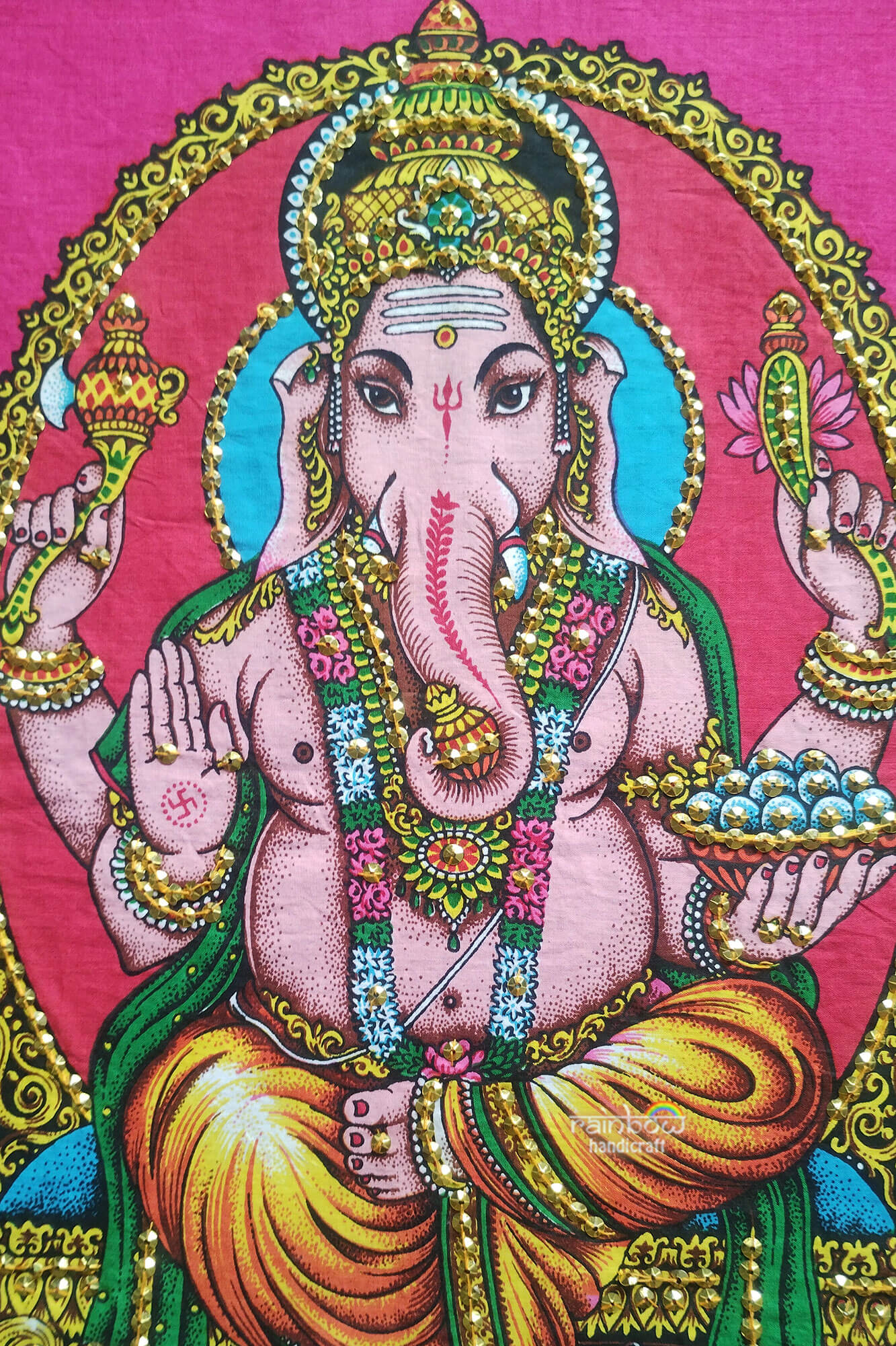 Bring divine elegance to your living space with this handcrafted Lord Ganesha wall tapestry.
