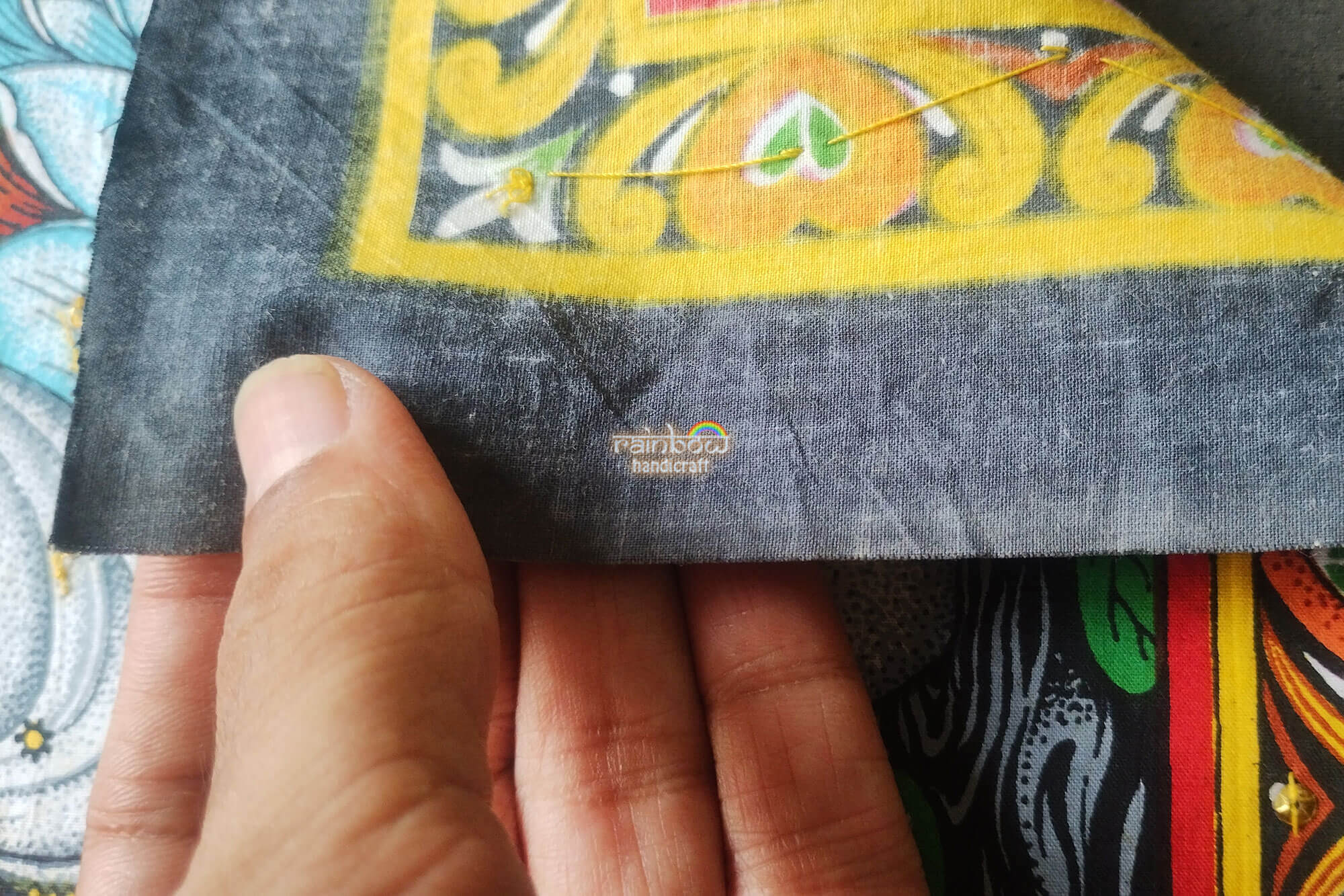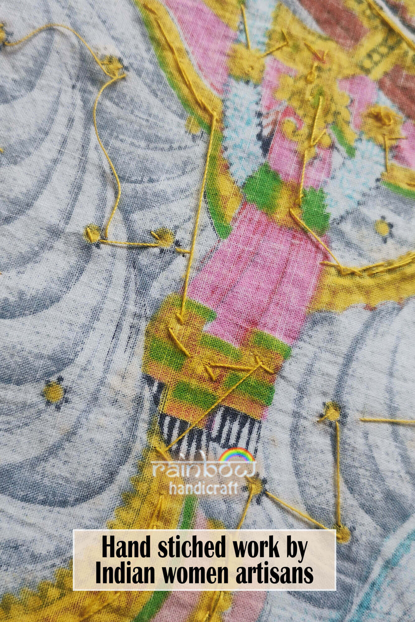 Made from premium cotton fabric, this beautiful wall hanging features traditional hand block printing enhanced with intricate sequin handwork, giving it a rich and vibrant appearance.
